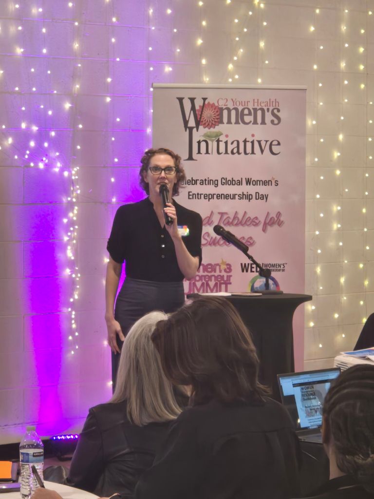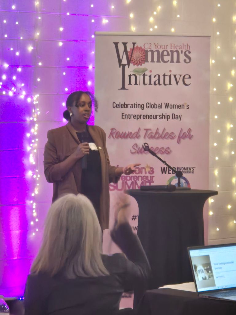 We jumped right into business and started the day’s events with speed networking. Janice Purnell of Five Joys Laundry Delivery Service and World Fusion Music Productions led us through the activity, having us line up in two lines facing each other. I grabbed a pocketful of business cards and found myself a spot in one of the lines. We would have about 15-30 seconds to introduce ourselves, share what we do, and give the other person time to do the same. I saw many familiar faces and shared business cards with new ones. As an introvert, I struggled a bit with this once, but I knew it was a quick activity, so I turned on the people skills for a bit and tried not to flinch at the sound of the cowbell that signified it was time to move on to the next entrepreneur.