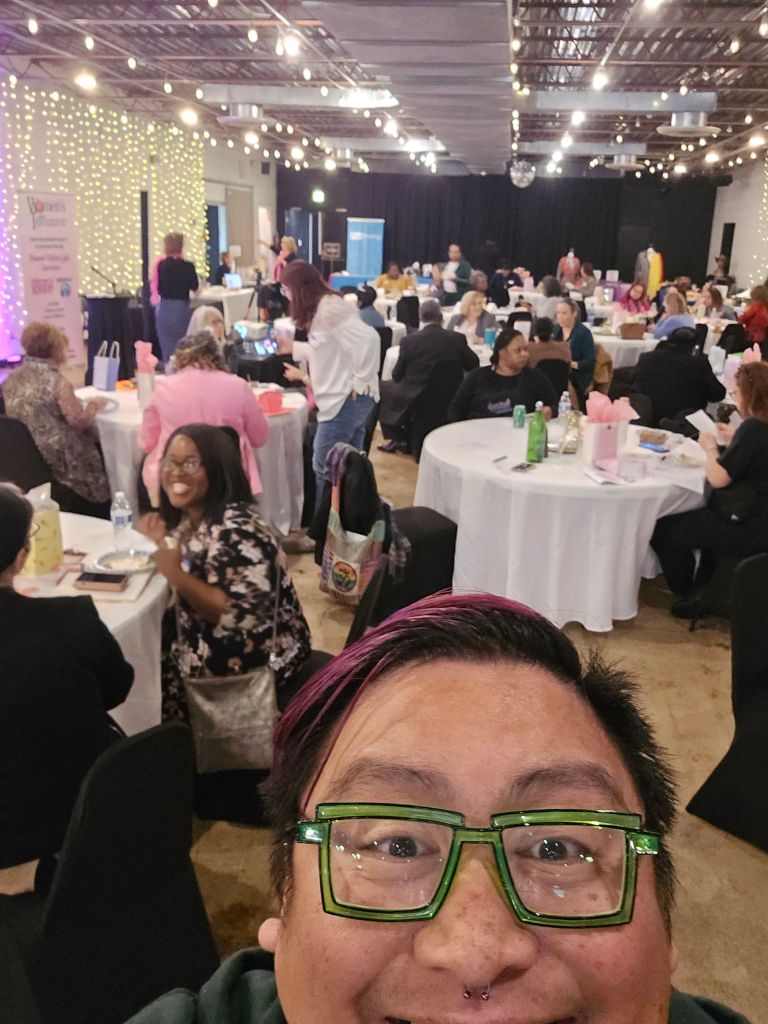 At check-in I received my welcome bag with the summit’s program information, samples and postcards from several businesses, snacks, and a list of attendees, vendors, and presenters. I also received a copy of Cindy Cohen’s book She Means Business: Breaking Through and Scaling Up and found myself a seat at a table in the back where i could see the podium but still keep my distance from the majority of the crowd (because I don’t always want to be the center of attention).