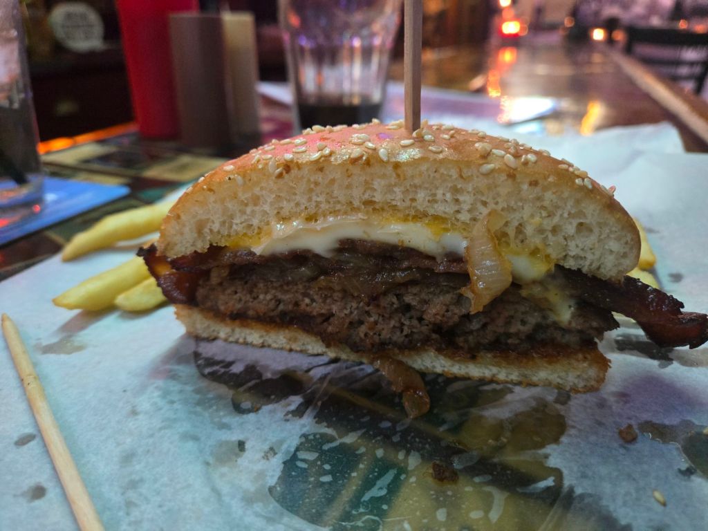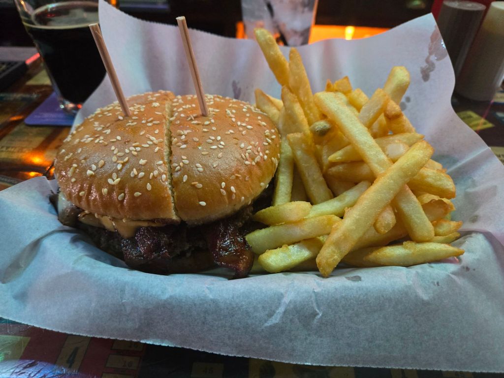 The Becky Burger has American/Swiss cheese, grilled onions, BBQ sauce, and bacon. Let me be the first to tell you this was the softest (non-brioche) bun I’ve ever had that still held together the whole time. The bacon was crispy (as it should be) and the grilled onions really elevated this juicy, perfectly cooked burger. The cheese combo was masterful and it was melted just right. Fries are standard, good crisp, cooked to a prime state ready for ketchup, salting, or (how I like fries) eating as is. I have to come back to the grilled onions because they really send it home, in the same way a brilliant au jus does for a French dip. Well done, Ian. Well done.