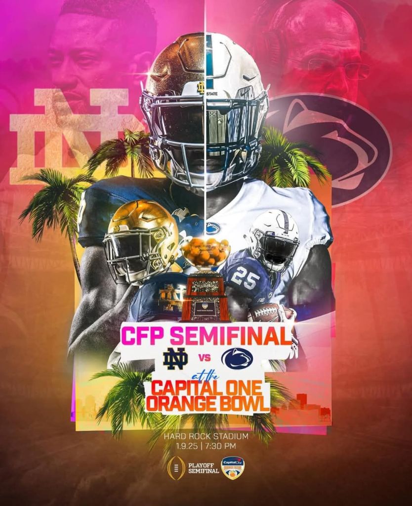 The 2025 Capital One Orange Bowl will take place on Thursday, January 9 at 7:30 PM at Hard Rock Stadium in Miami Gardens. The game will be a College Football Playoff semifinal between Penn State and Notre Dame, with the winner going to the National Championship.