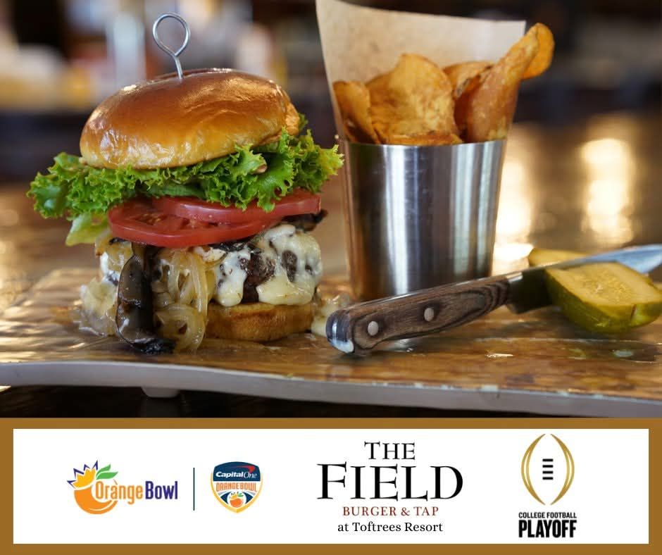 Since Notre Dame is facing off with Penn State on the field, the Orange Bowl Committee found a burger opponent in Pennsylvania. Ian’s meaty masterpiece will face off with whatever The Field Burger & Tap choose to bring down to Miami. Here’s a pic from their Facebook page. The meat to bun ratio looks too high and the patty looks too thick IMHO.