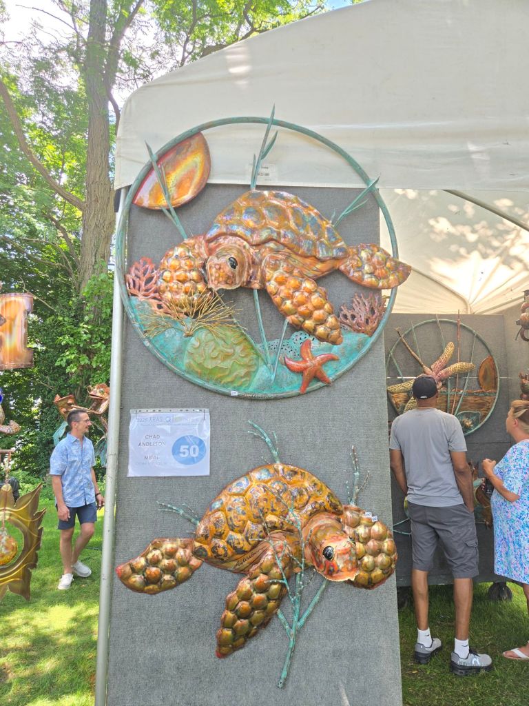 Sunday, July 12th from 10am-5pm is the final day of this massive, FREE art fair in St Joseph, Michigan. Over 170 artists from all over Michigan and Indiana, but also from Illinois, Iowa, Tennessee, Pennsylvania among others is what you’ll be treated to along the bluff overlooking Lake Michigan. There’s plenty of space for all the foot traffic, strollers, and doggos, so get there early and chat with the artists!