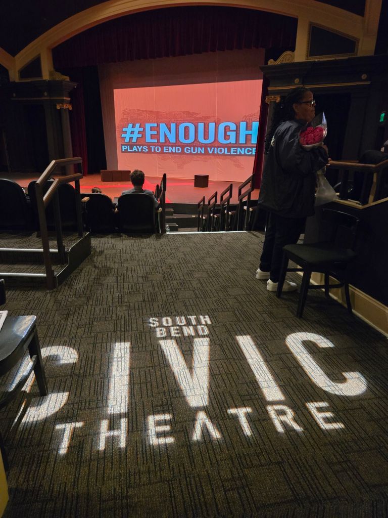 As a recipient on the South Bend Civic Theatre‘s email list, I found out about this event a week or two before and took advantage of the free ticket on a night I was kid-free. Free theatre? Plays written by teens? As a movement to end gun violence? Having the availability, I couldn’t pass it up.